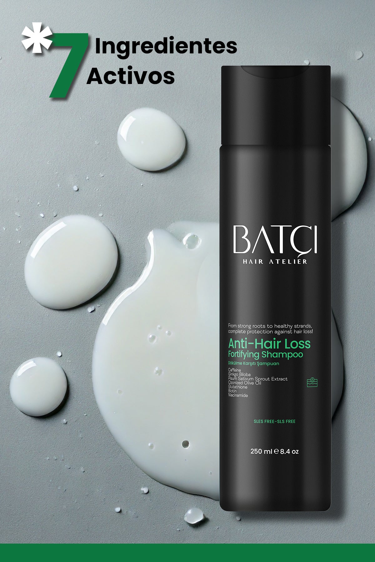 Batçı Anti-Hair Loss Shampoo, effective against hair loss and dermatologically formulated, strengthens hair follicles for a voluminous, healthy, and shiny appearance. With regular use, it significantly reduces hair loss, adds volume to your hair, and helps you create a confident style. Get strong, vibrant hair with Batçı Shampoo!